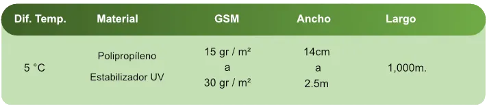 AGROMANTA, es una tela no tejida fabricada con filamentos de polipropileno de 15 gr/m²y 17gr/m², esta malla es completamente permeable al agua y al aire, protegiendo a los cultivos de daños por la acción del viento, fuertes lluvias, plagas y vectores de virus.